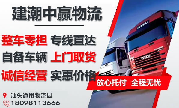 汕头到东莞塘厦镇物流专线是建潮中赢物流的主营干线之一,汕头到东莞货运专线为工厂、贸易商、批发商等货主提供整车、零担、大件运输、普快特快、搬家搬厂、回程车调用等全方位的物流服务!